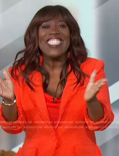 Cinq a Sept Khloe Boucle Blazer in Cherry Tomato worn by Sheryl Underwood on The Talk