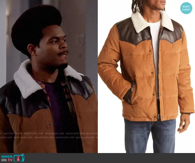 Jacket: Yellowstone Western Corduroy Puffer Jacket with Faux Shearling & Faux Leather Trim by Levis