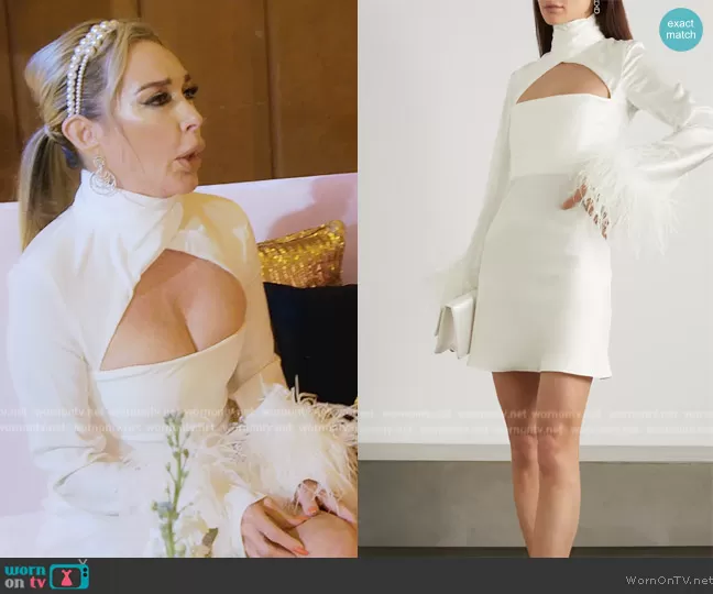 Dress: Odessa cutout feather-trimmed satin mini dress by 16Arlington