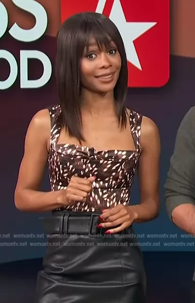 Zuri Hall on Access Hollywood on NBC was spotted wearing this brown printed top on Access Hollywood on Jan 27 2023's episode. Zuri's Top is the Imogene Corset by Miaou.