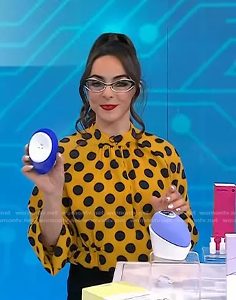 on Today on NBC was spotted wearing this yellow polka dot blouse on Today on Jan 30 2023's episode. 's Top is the Polka Dot Blouse by Zara.