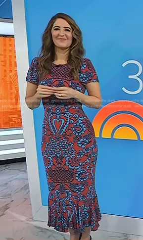 on Today on NBC was spotted wearing this orange floral dress on Today on Jan 30 2023's episode. 's Dress is the Lulani Midi Dress by Rhode.