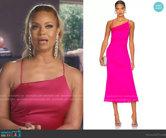 Gizelle Bryant on The Real Housewives of Potomac on Bravo was spotted wearing this pink confessional dress on The Real Housewives of Potomac on episode 'The Naked Truth' (7x16) in Jan 2023. Gizelle's Dress is the Electra Slip Dress by Milly.