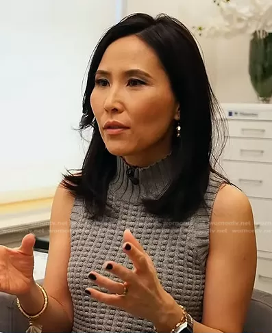 Vicky Nguyen on Today on NBC was spotted wearing this grey sleeveless sweater on Today on Jan 30 2023's episode. Vicky's Sweater is the Mozart Popcorn Stitch Sleeveless Cotton Sweater by French Connection.