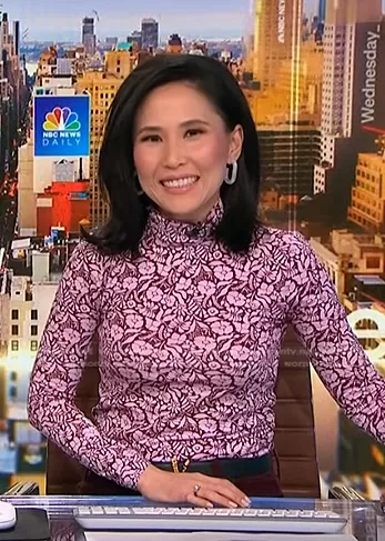 Vicky Nguyen on NBC News Daily on NBC was spotted wearing this pink floral turtleneck top on NBC News Daily on Dec 04 2023's episode. Vicky's Top is the Tissue Turtleneck in Vintage Floral by J. Crew.