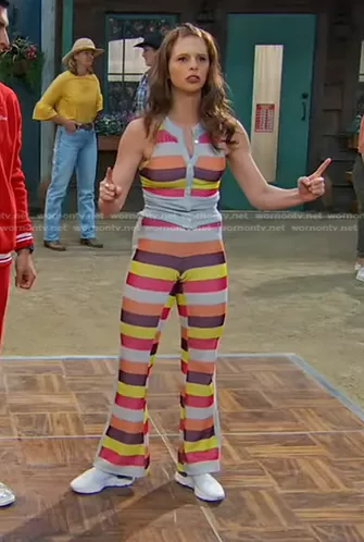 Victoria Vance (played by Jordan Clark) on Bunkd on Disney was spotted wearing this striped pants on Bunkd on episode 'Wild West Side Story' (6x14) in Jan 2023. 's Pants is the Melody Kick Flares by Free People.