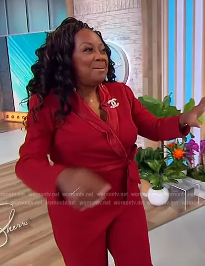 on Sherri on FOX was spotted wearing this red satin lapel tuxedo jumpsuit on Sherri on Feb 03 2023's episode. 's Jumpsuit is the Tuxedo Jumpsuit by Adrianna Papell.