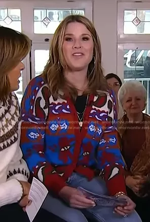 Jenna Bush Hager on Today on NBC was spotted wearing this red paisley cardigan on Today on Feb 03 2023's episode. Jenna's Sweater is the Sabina Cardigan in Paisley Blue by Carolina K.
