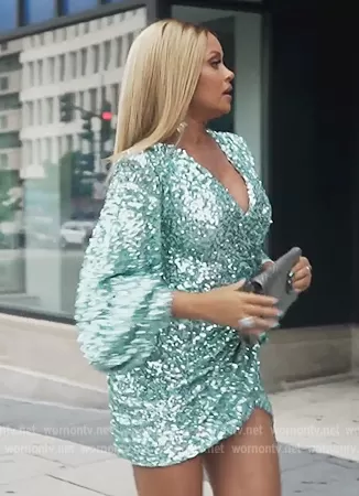 Gizelle Bryant on The Real Housewives of Potomac on Bravo was spotted wearing this blue sequin wrap mini dress on The Real Housewives of Potomac on episode 'A Grande Finale' (7x17) in Feb 2023. Gizelle's Dress is the Elizabeth Sequin Wrap-Effect Minidress by Bronx and Banco.