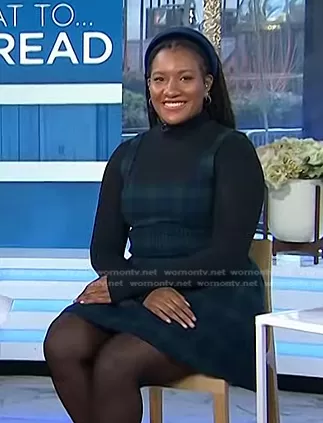 on Today on NBC was spotted wearing this green plaid dress and platform sandals on Today on Feb 06 2023's episode. 's Dress is the Cher Dress by Hill House . 's Shoes is the Tan-Go Platform Pump by Valentino.