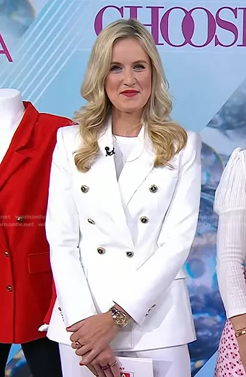 on Today on NBC was spotted wearing this white double breasted blazer on Today on Feb 07 2023's episode. 's Jacket is the Tailored Double Breasted Blazer by Zara.