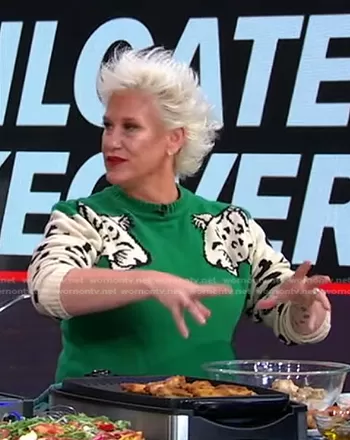 MinkPink Snow Leopard Intarsia Sweater worn by Anne Burrell on Good Morning America