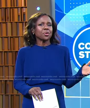 Deborah Roberts on Good Morning America on ABC was spotted wearing this Deborah’s blue long sleeve dress on Good Morning America on Feb 07 2023's episode. Deborah's Dress is the Dolman Long Sleeve Cady Crepe Midi Dress by Victoria Beckham.
