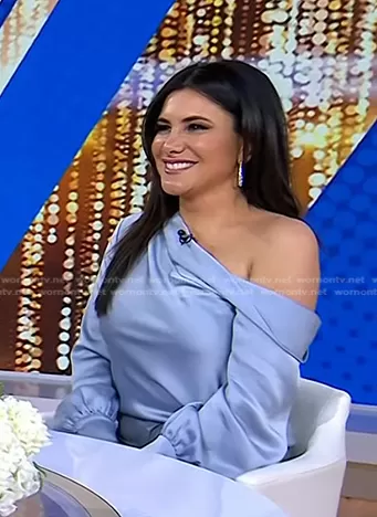 on Today on NBC was spotted wearing this blue one off-shoulder satin top on Today on Feb 08 2023's episode. 's Top is the Alice Top by Jonathan Simkhai.