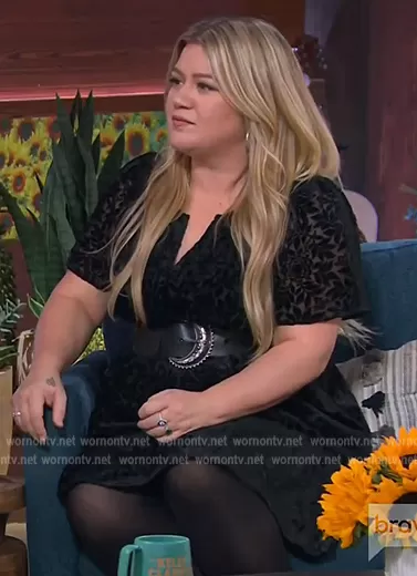 Kelly Clarkson on The Kelly Clarkson Show on NBC was spotted wearing this black floral velvet mini dress on The Kelly Clarkson Show on Feb 08 2023's episode. Kelly's Dress is the Mini Dress Velvet Edition by The Somerset.