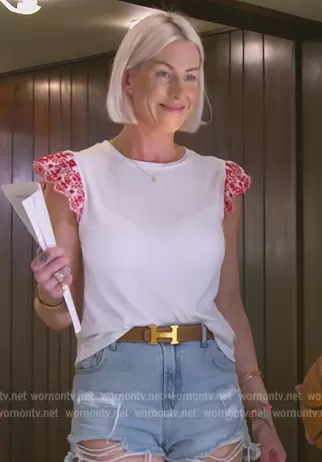 on The Real Housewives of New Jersey on Bravo was spotted wearing this white floral lace tee on The Real Housewives of New Jersey on episode 'New Friends, Same Jersey' (13x01) in Feb 2023. 's Top is the Embroidered Top by Zara.