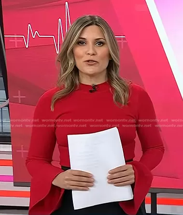 on Today on NBC was spotted wearing this red bell sleeve top on Today on Feb 09 2023's episode. 's Top is the Bell Sleeve Sweater by Diane von Furstenberg.