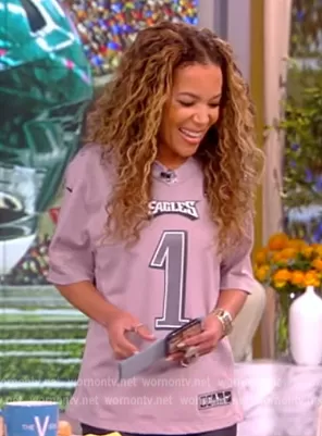 Sunny Hostin on The View on ABC was spotted wearing this gray Eagles jersey on The View on Feb 11 2023's episode. Sunny's Top is the NFL Philadelphia Eagles Super Bowl LVII Atmosphere by Nike.