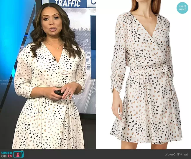 Adelle Caballero on Today on NBC was spotted wearing this white leopard print wrap dress on Today on Feb 13 2023's episode. Adelle's Dress is the Arabella Printed Wrap Dress by Habitual.