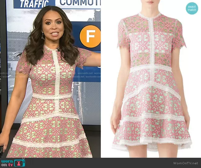 Adelle Caballero on Today on NBC was spotted wearing this pink embroidered lace dress on Today on Sep 12 2024's episode. Adelle's Dress is the Rustikan Dress by Alexis.
