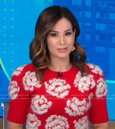 Rebecca Jarvis on Good Morning America on ABC was spotted wearing this red floral embroidered sweater on Good Morning America on Feb 06 2026's episode. Rebecca's Sweater is the Rose-Embroidered Sweater by Tory Burch.