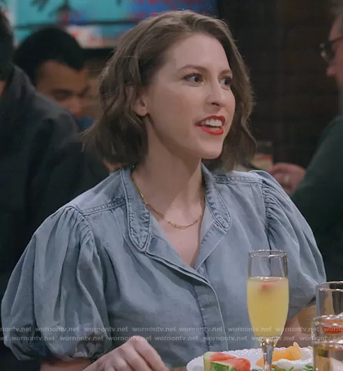Deirdre (played by Eden Sher) on How I Met Your Father on Hulu was spotted wearing this denim puff sleeve top on How I Met Your Father on episode 'Pathetic Deirdre' (2x04) in Feb 2023. 's Top is the Denim Top by Frame.