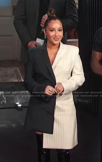 Adrienne Houghton on E! News on E! was spotted wearing this pinstripe asymmetric blazer dress on E! News on Feb 28 2023's episode. Adrienne's Dress is the Pinstripe Formal Dress by Off-White.