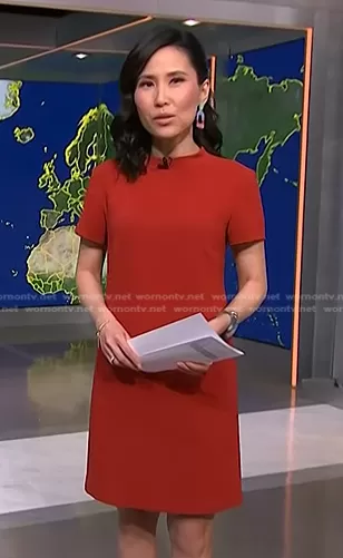 Vicky Nguyen on NBC News Daily on NBC was spotted wearing this red short sleeve shift dress on NBC News Daily on Feb 17 2026's episode. Vicky's Dress is the Jasneah Admiral Crepe Dress by Theory.