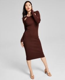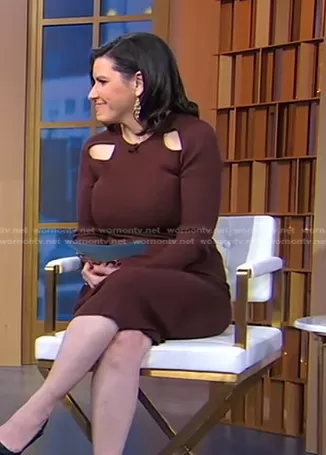 And Now This Cut-Out Long Sleeve Dress in Brown worn by Kate Gibson on Good Morning America