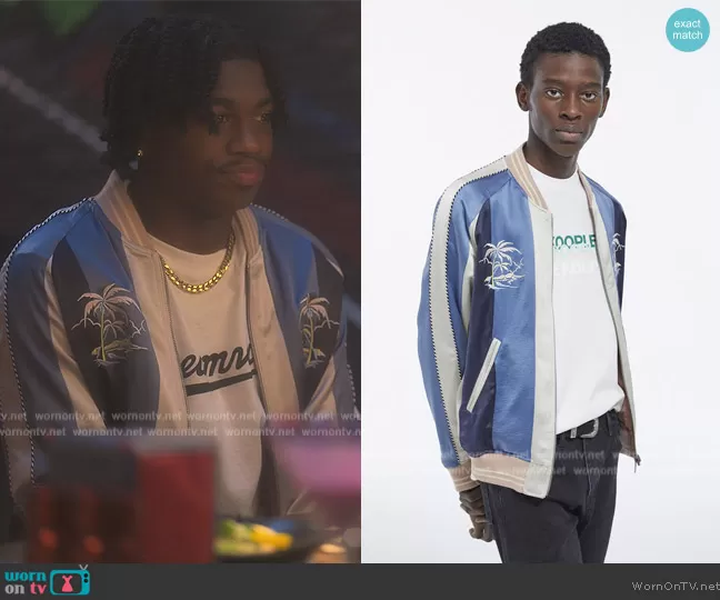 Zeke (played by Ceyair J Wright) on Grown-ish on Freeform was spotted wearing this blue palm embroidered bomber jacket on Grown-ish on episode 'Happy Not Knowing' (5x14) in Feb 2023. Zeke's Jacket is the Blue and Pink Embroidered Reversible Jacket by The Kooples.