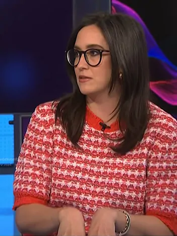 Savannah Sellers on NBC News Daily on NBC was spotted wearing this red short sleeve knit sweater on NBC News Daily on Mar 31 2025's episode. Savannah's Sweater is the Tweedy Sweater Tee by Ann Taylor.