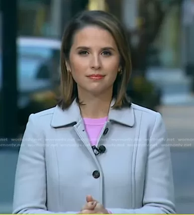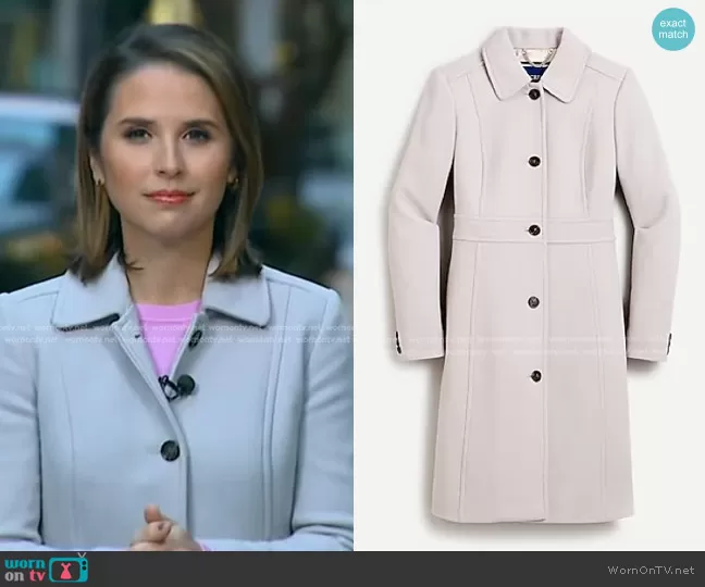 Elizabeth Schulze on Good Morning America on ABC was spotted wearing this light grey coat on Good Morning America on Feb 26 2024's episode. Elizabeth's Coat is the Classic Lady Day Coat in Italian Double-Cloth Wool with Thinsulate by J. Crew.