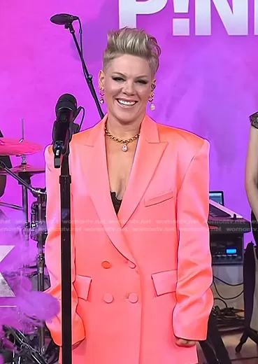 Alex Perry Wells Double-Breasted Satin Blazer in Coral worn by Pink on Today