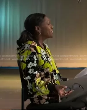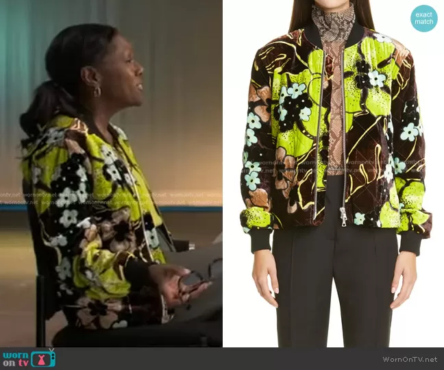 Deborah Roberts on Good Morning America on ABC was spotted wearing this floral velvet jacket on Good Morning America on Feb 24 2023's episode. Deborah's Jacket is the Velvet Floral Quilted Jacket by Dries van Noten.