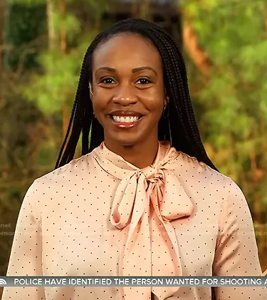 on Today on NBC was spotted wearing this pink dotted tie neck blouse on Today on Feb 24 2023's episode. 's Top is the Luis Blouse in Rose Cloud True Black by Equipment.