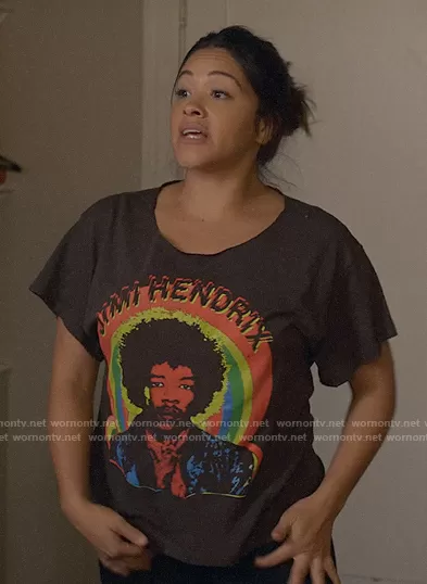 Madeworn Rock Jimmy Hendrix Print Tee worn by Nell Serrano (Gina Rodriguez) on Not Dead Yet