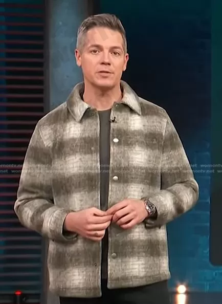 A.P.C Blouson New Alan Checkered Jacket worn by Jason Kennedy on Access Hollywood