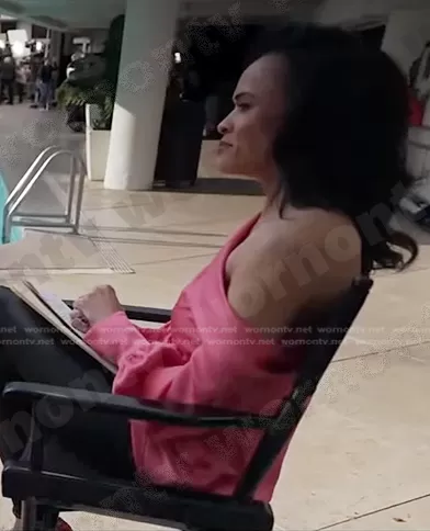 Linsey Davis on Good Morning America on ABC was spotted wearing this pink one off-shoulder top on Good Morning America on Mar 07 2023's episode. Linsey's Top is the Alice One-Shoulder Satin Top by Jonathan Simkhai.