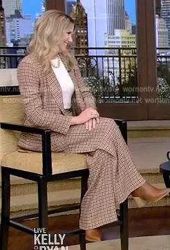 on Live with Kelly and Mark on Disney ABC Home Entertainment was spotted wearing this Jennifer Nettles’ houndstooth blazer and pants on Live with Kelly and Ryan on Mar 03 2023's episode. 's Blazer is the Jayda Blazer by L'Agence . 's Pants is the Pilar Wide Leg Pants by L'Agence.
