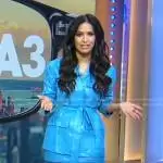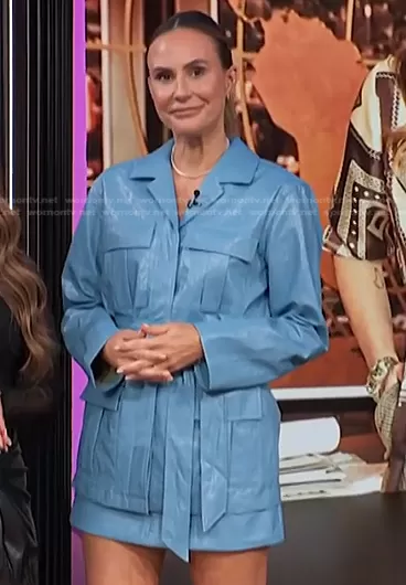 Keltie Knight on E! News on E! was spotted wearing this blue leather jacket and mini skirt on E! News on Mar 01 2023's episode. Keltie's Jacket is the Romily Belted Faux Leather Jacket by Rails . Keltie's Skirt is the Prim Faux Leather Miniskirt by Rails.
