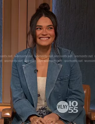 Staud Maxwell Denim Blazer worn by Brittany O'Grady on The Drew Barrymore Show
