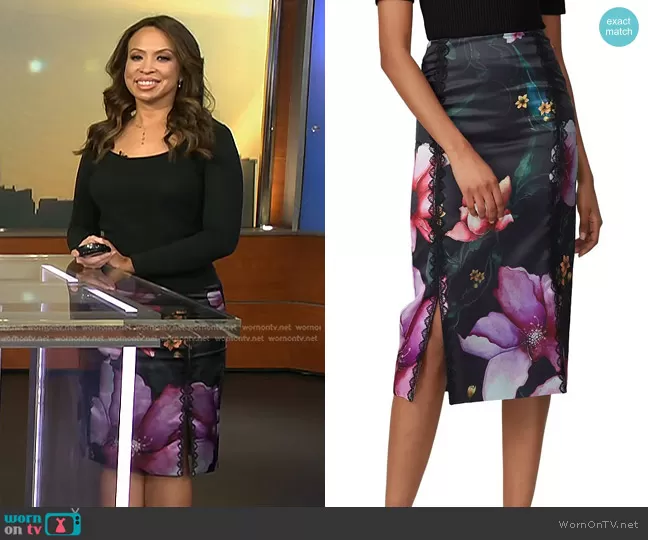 Adelle Caballero on Today on NBC was spotted wearing this black floral skirt on Today on Mar 06 2023's episode. Adelle's Skirt is the Mikado Pencil Skirt by Marchesa Notte.
