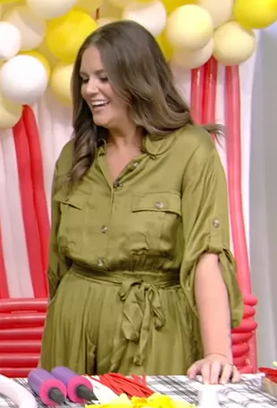 Monica Mangin on Live with Kelly and Mark on Disney ABC Home Entertainment was spotted wearing this green satin utility jumpsuit on Live with Kelly and Ryan on Mar 06 2023's episode. Monica's Jumpsuit is the Silky Cargo Jumpsuit by Anthropologie.