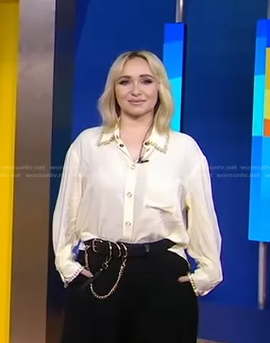 Burberry Ring-Pierced Silk Oversized Shirt worn by Hayden Panettiere on Good Morning America