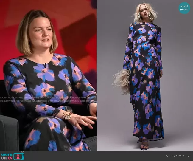 on Good Morning America on ABC was spotted wearing this black floral dress on Good Morning America on Mar 06 2023's episode. 's Dress is the Floral Cutout Back Long Sleeve Maxi Dress by Topshop.