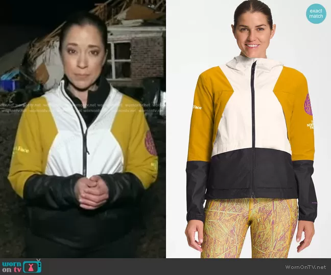 on Good Morning America on ABC was spotted wearing this white colorblock jacket on Good Morning America on Mar 06 2023's episode. 's Jacket is the Trailwear Wind Whistle Jacket by The North Face.
