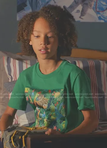 Denny (played by Declan Pratt) on 9-1-1 on Fox was spotted wearing this green jungle print tee on 9-1-1 on episode 'In a Flash' (6x10) in Mar 2023. 's Shirt is the Jungle-Print Organic Cotton T-shirt by Kenzo Kids.