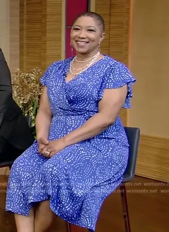 DKNY Print Faux Wrap Dress worn by Deja Vu on Live with Kelly and Mark