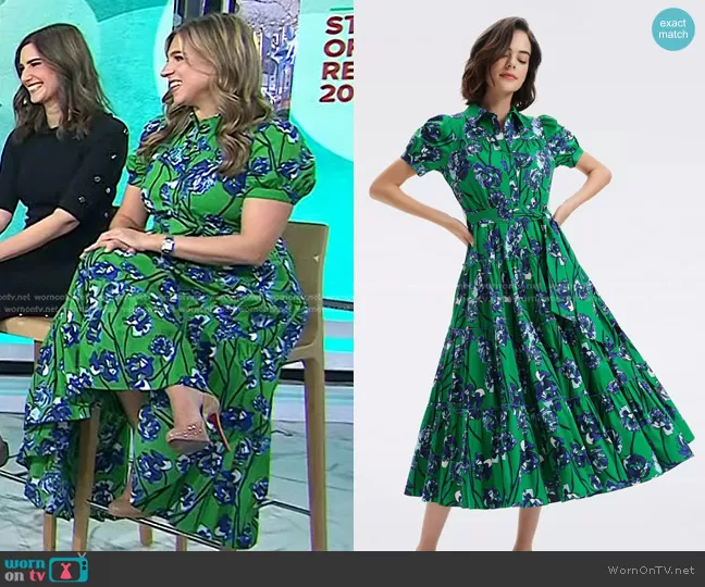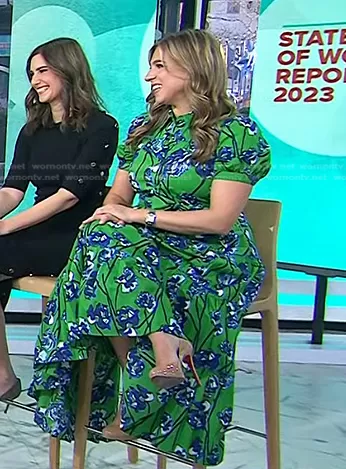 on Today on NBC was spotted wearing this green floral maxi dress on Today on Mar 09 2023's episode. 's Dress is the Queena Cotton Poplin Midi Dress by Diane von Furstenberg.