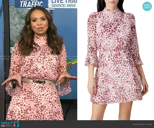 Adelle Caballero on Today on NBC was spotted wearing this pink floral bell sleeve dress on Today on Mar 09 2023's episode. Adelle's Dress is the Floral Calvin Dress by Rachel Zoe.